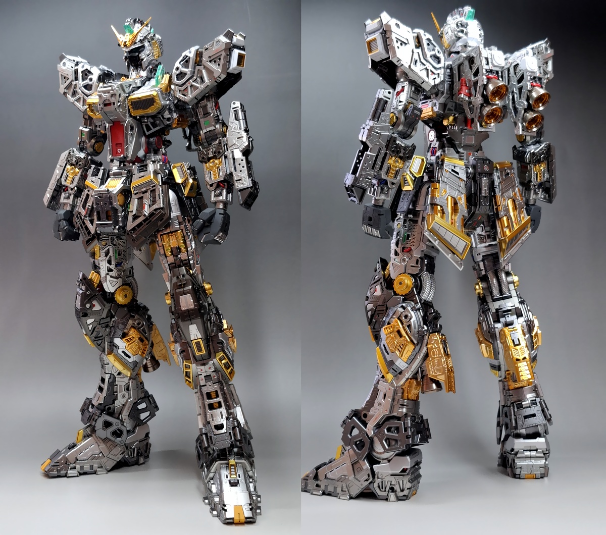 バンダイのプラモデルキットを組み立て、つや消しクリアコートを施した物です。フレーム等にメタリック塗装を施した完成品モデルで、高級感と重厚感あふれる造りになっております。