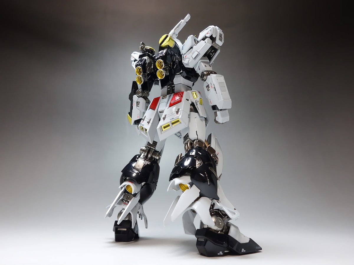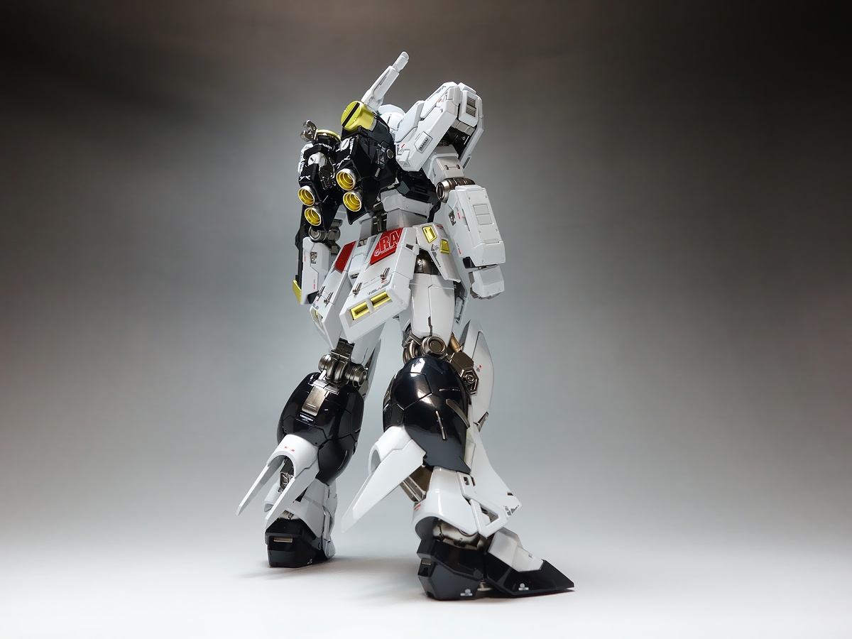 ● 製作内容基本的に説明書通りの組み立てとなります。・ゲート処理を丁寧に仕上げます。(特に外装パーツにはペーパー掛けも行います)・ホワイトの外装には、チタニウムフィニッシュに代わる当店が考案した独自塗装を施し、豪華で煌びやかな仕上がりに!・他の色も、艶感があり重厚な輝きを放つキャンディー塗装やメタリック塗装を施し、高級感ある表現に!・内部フレームにはリアルな金属感と重厚感あふれるメタリック塗装を採用!・水転写デカールを貼ります。(2体分使用)・頭部ツインアイやセンサーは光反射塗装を施します。バズーカのランサーはUVレジンでクリアーパーツ化します。・パイロットフィギュアの塗装はオプションとなります。